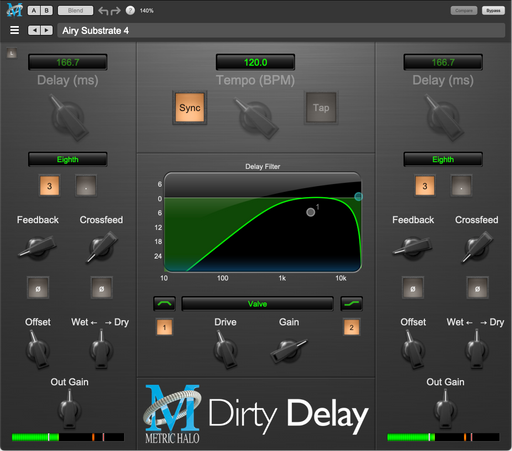 Metric HaloMH Dirty Delay v4 - a Gritty, Musical Feedback Delay.MH Dirty Delay is a fantastic-sounding feedback delay processor with integrated Character and ...