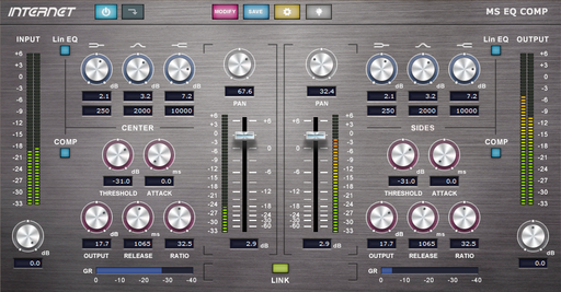 Internet CO.MS EQ COMP can encode standard STEREO (left/right) signal to MS (middle and side) and add EQ and Compressor separately to middle and side, also edi...