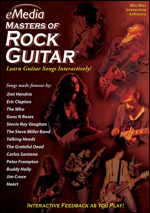 eMediaLearn How to Play Classic Rock Guitar Songs InteractivelyeMedia Masters of Rock Guitar Windows/Mac software teaches you rock guitar songs made famo...