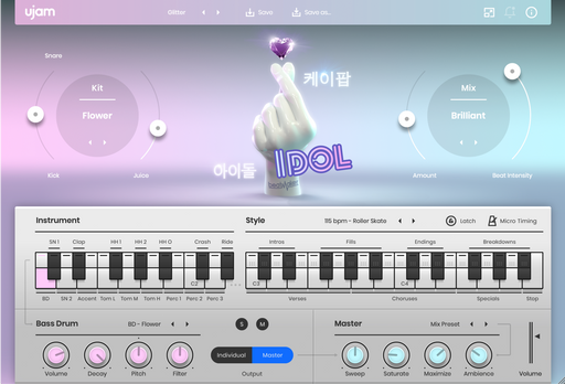 UJAMGet your party onIDOL puts the bright and hyper-processed sound of K-Pop beats in your hands. Keep the good feels coming with clean and polished dr...