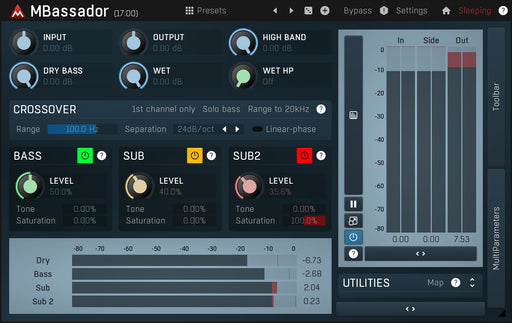Melda ProductionModern mixes crave a distinctive tight bass spectrum. MBassador enhances your existing bass content and produces subbass spectrum as well. Pristine...