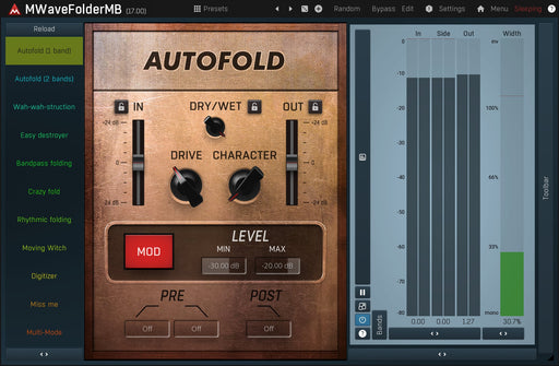 Melda ProductionMWaveFolderMB is a powerful distortion module, inspired by analogue technology and taken to a whole new level using digital processing. It has a un...